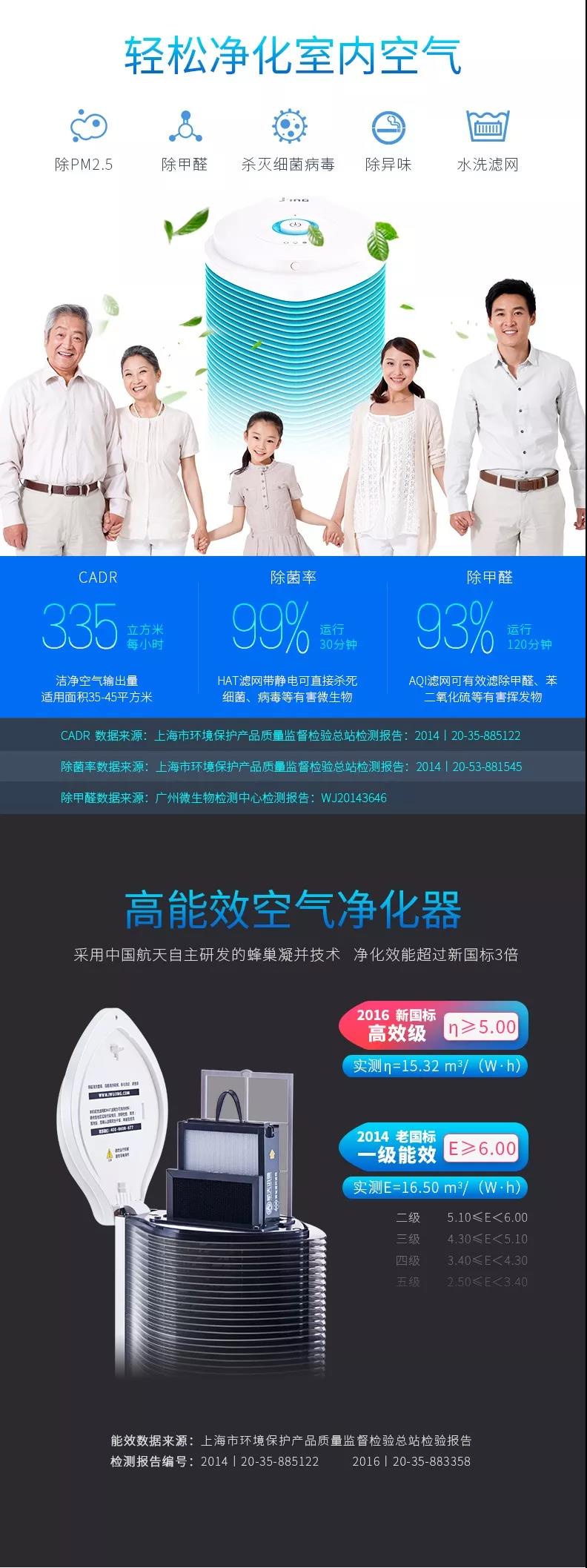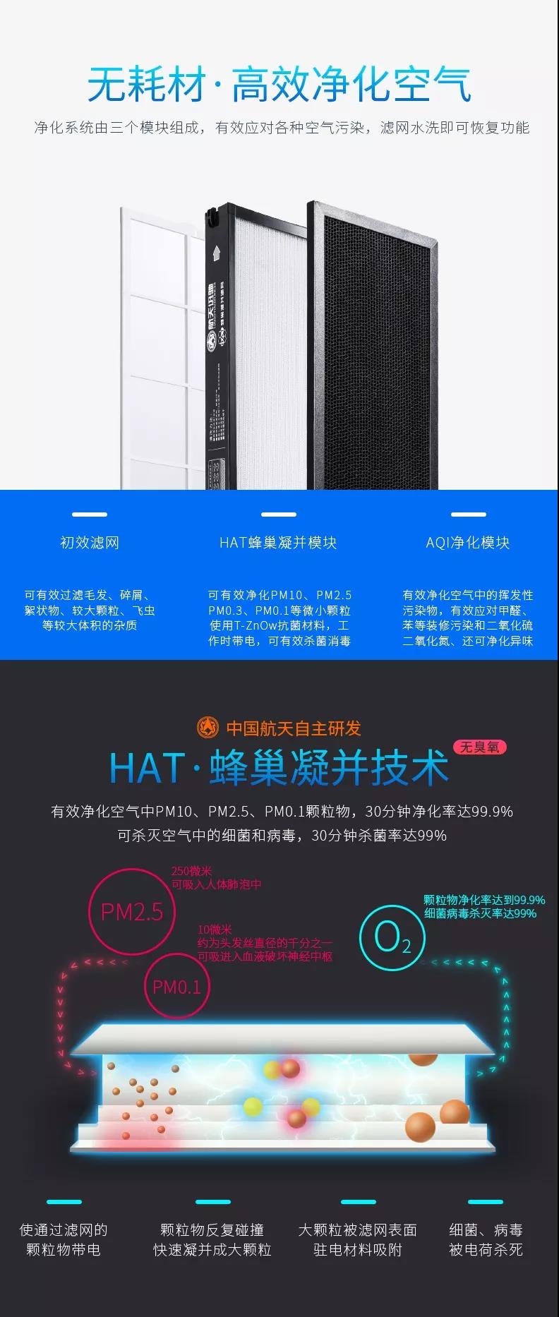 航天迅馳空氣凈化器為無耗材空氣凈化器,凈化效能超2016新國標3倍;CARD值(每小時凈化空氣量)335立方米/每小時(大);運用中國航天自主研發(fā) HAT·蜂巢凝并技術,有效凈化空氣中PM10、PM2.5、PM0.1顆粒物,30分鐘凈化率達99.9% 可殺滅空氣中的細菌和病毒,30分鐘殺菌率99%。