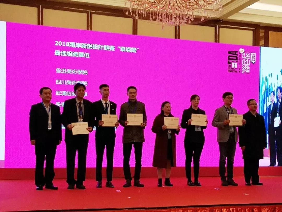 在頒獎儀式上,航天通信敖剛董事長上臺為2018年兩岸新銳設(shè)計競賽“華燦獎”最佳組織單位頒獎。
