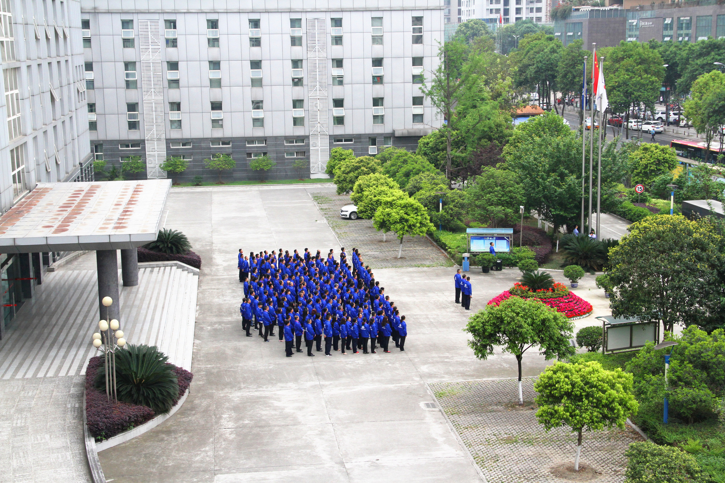 成都航天圍繞“逐夢航天 合作共贏主題舉行升旗儀式。公司領導班子、中層干部、團員青年、職能部門全體人員以及部分事業部、制造部員工約300人英姿颯爽,整齊列隊。在激昂的國歌聲中,五星紅旗冉冉升起,在雄壯有力的《航天科工之歌》中,藍、白色的集團公司司旗隨風舞動,彰顯了我國航天事業的蒸蒸日上。
