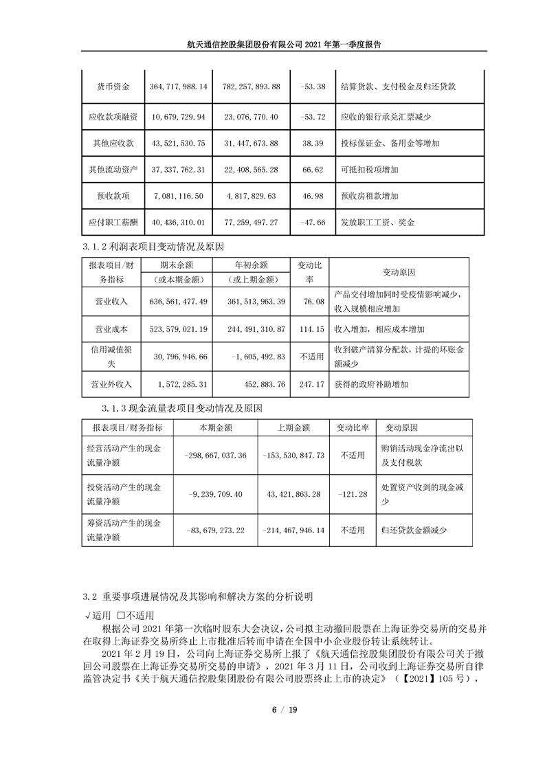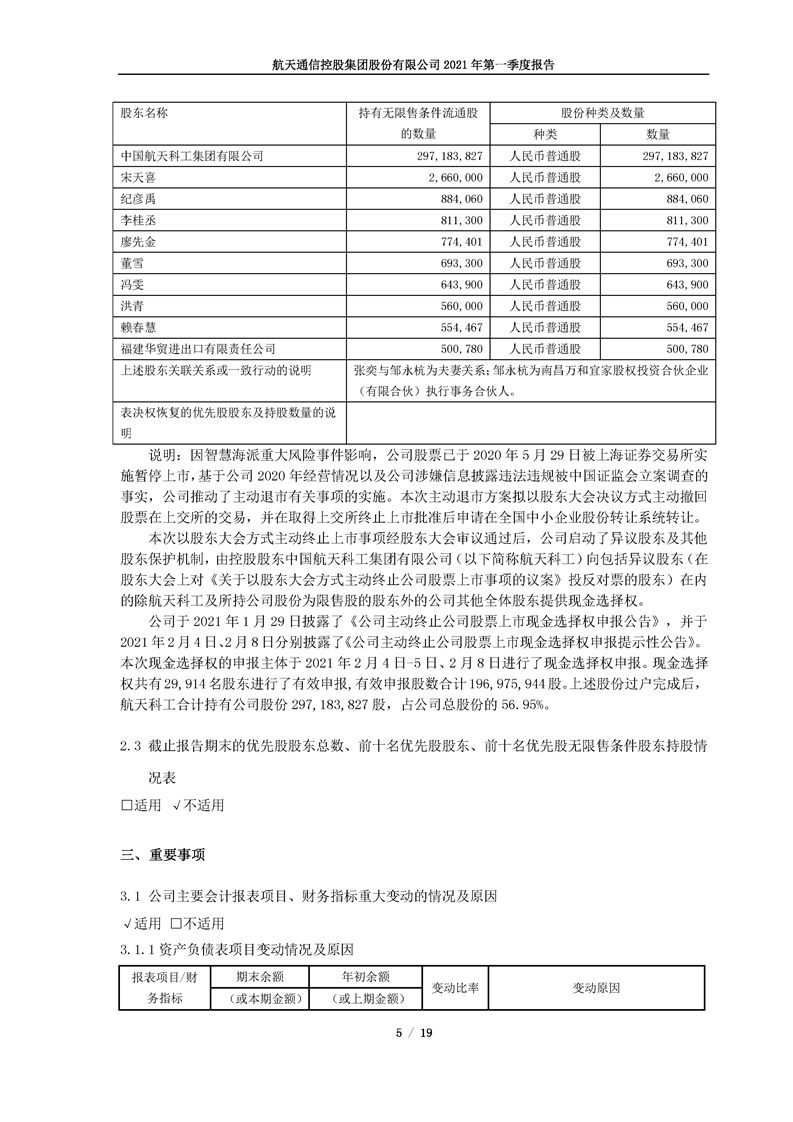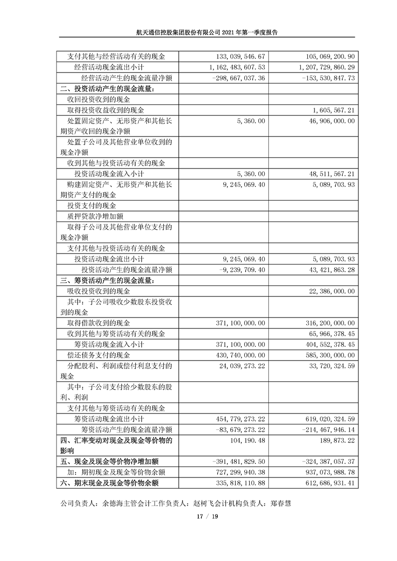 航天通信控股集團(tuán)股份有限公司2021年第一季度報(bào)告